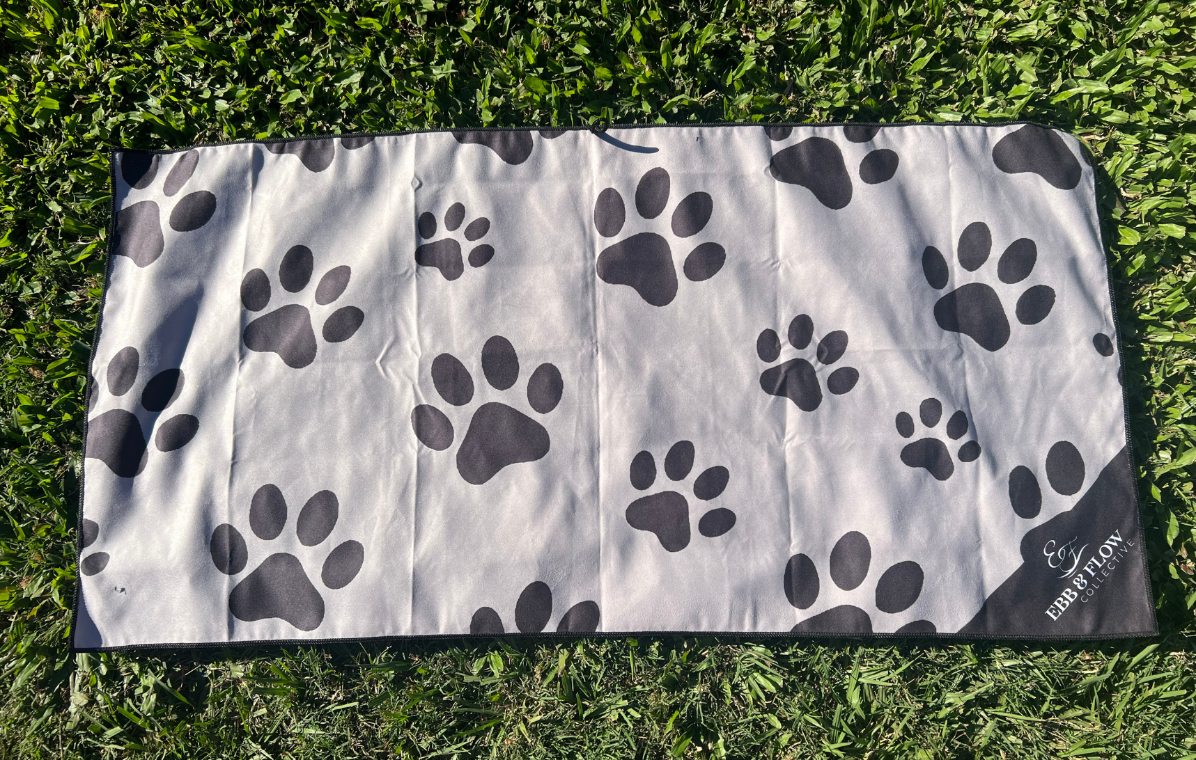 Ebb & Flow Collective Pet Towel – Grey Paw Print Design